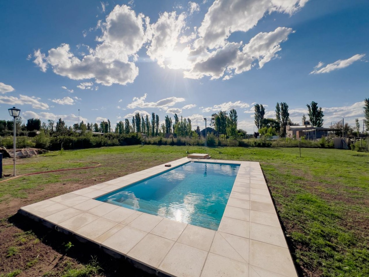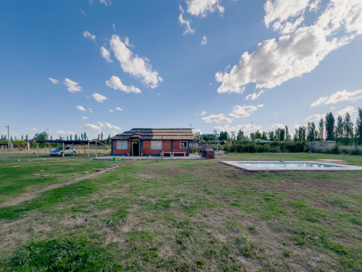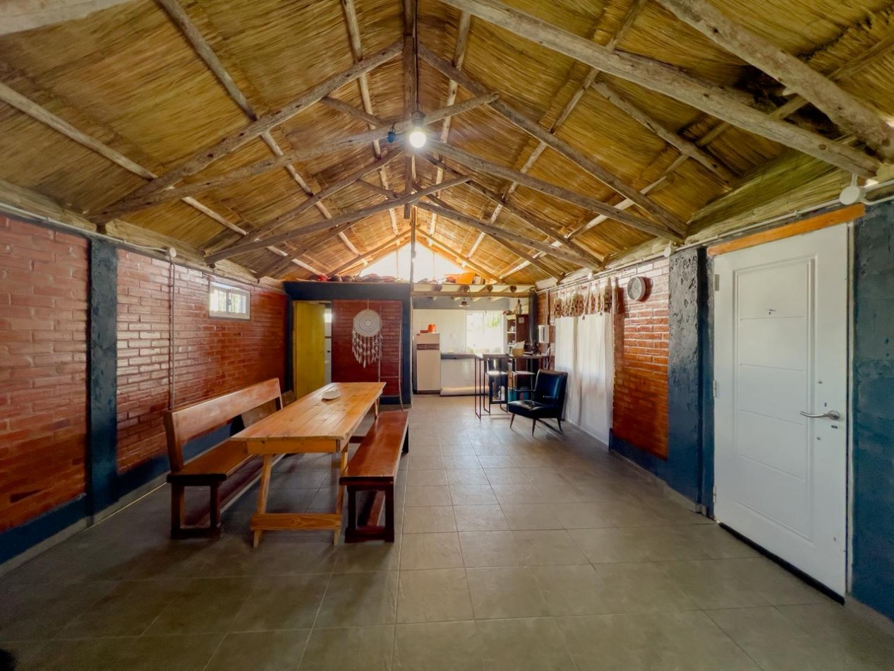 La propiedad se desarrolla sobre un terreno de 2.000 m² completamente parquizado, con césped natural y espacio suficiente para futuras ampliaciones, áreas de descanso o proyectos recreativos. Cuenta con 60 m² cubiertos, distribuidos en dos ambientes que ofrecen comodidad y versatilidad para reuniones, eventos o descanso familiar.