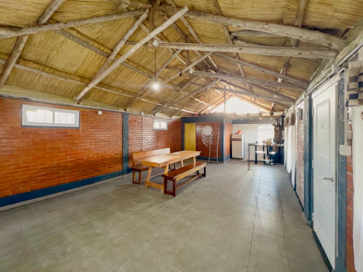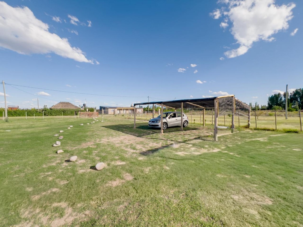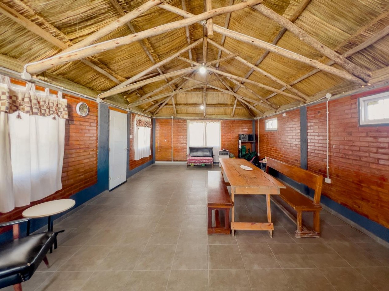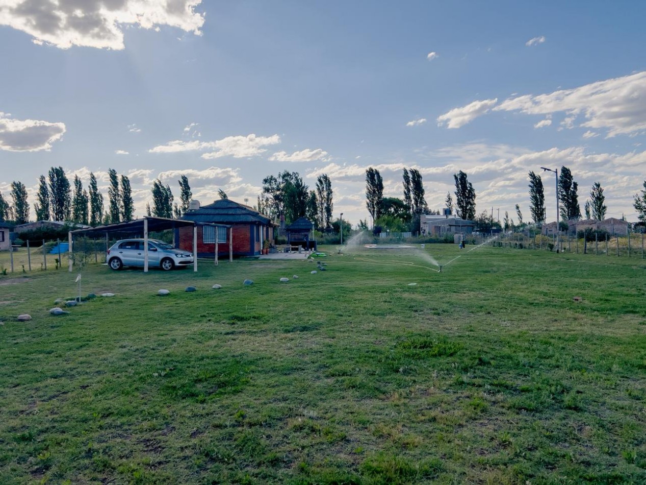 La propiedad se desarrolla sobre un terreno de 2.000 m² completamente parquizado, con césped natural y espacio suficiente para futuras ampliaciones, áreas de descanso o proyectos recreativos. Cuenta con 60 m² cubiertos, distribuidos en dos ambientes que ofrecen comodidad y versatilidad para reuniones, eventos o descanso familiar.